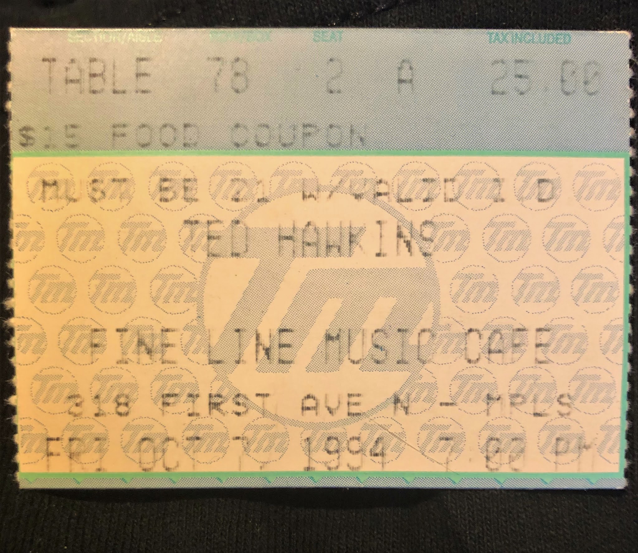 I could finally put a name to the mysterious busker who so impressed me and armed with that knowledge I sought out everything I could on Ted Hawkins but there wasn't a lot out there. As time passed, "Watch Your Step" became one of the most cherished albums I owned and I never tired telling about my chance encounter with this enigmatic character. But what I really wanted was to see him live again. It was quite a wait. Then one day out of the blue, that same brother who turned me on to "Watch Your Step" and later "Happy Hour" walked in to my house clutching concert tickets and announced "I got us one of the front tables at the Fine Line for Ted Hawkins! Happy Birthday and Deja Vu!